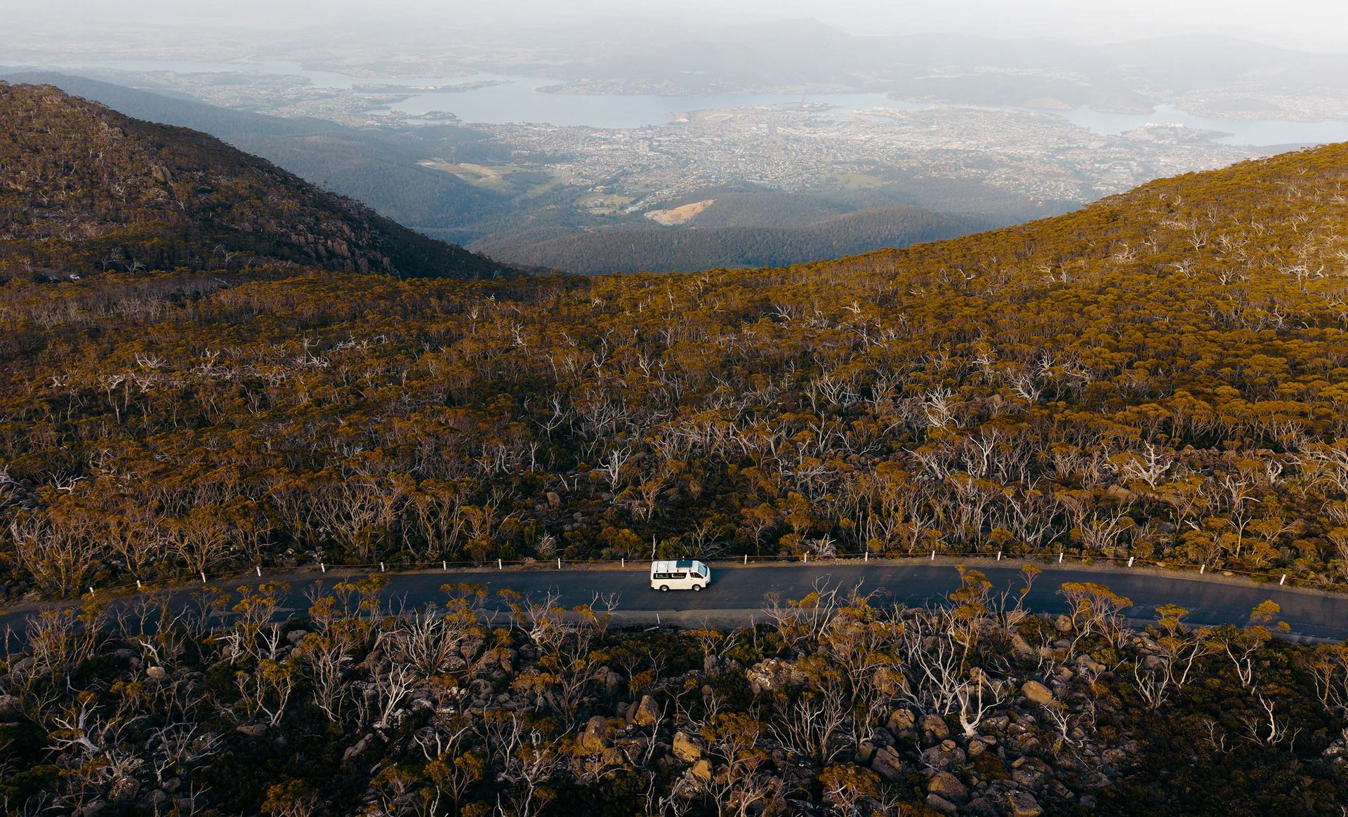 With your van sorted (see above — if you're flying in, BIG4 Hobart Airport with delivery is the move), use the afternoon to tick off your first things to do in Tasmania by exploring the compact capital. The must-do? Drive 30 minutes up to the summit of kunanyi/Mount Wellington for panoramic views over the city, the harbour, and the Tasmanian wilderness stretching south.