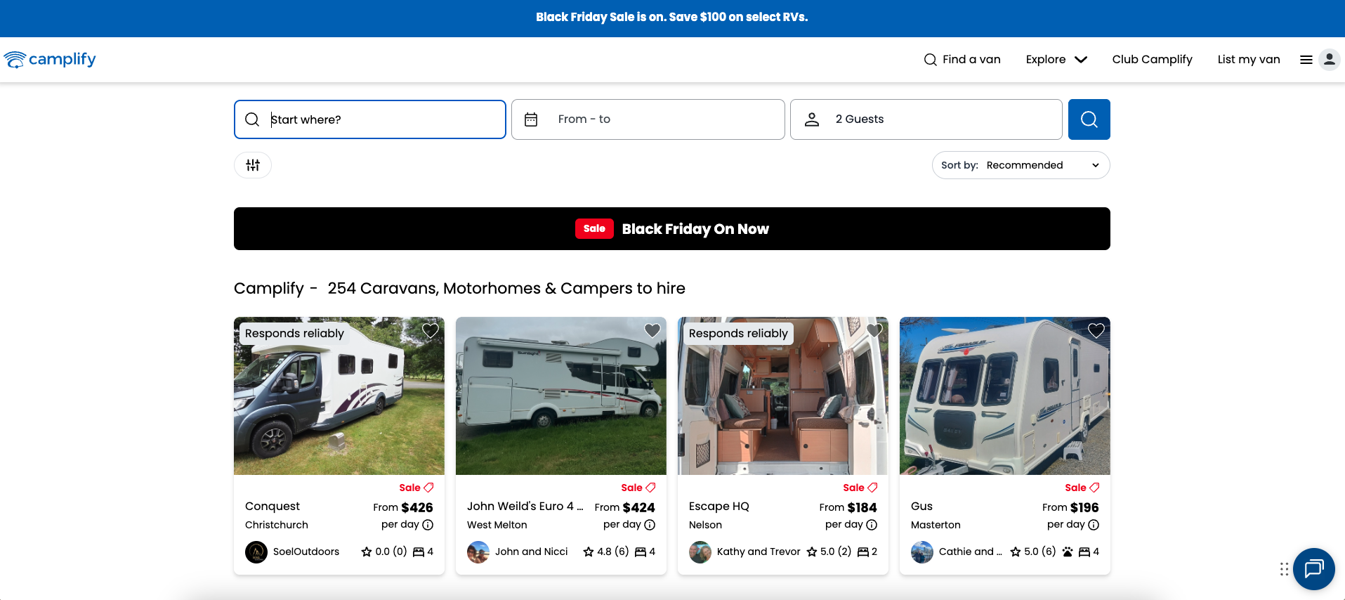 For this campaign, owners opted in to offer a $100 discount to hirers using the code BLACKFRIDAY100.