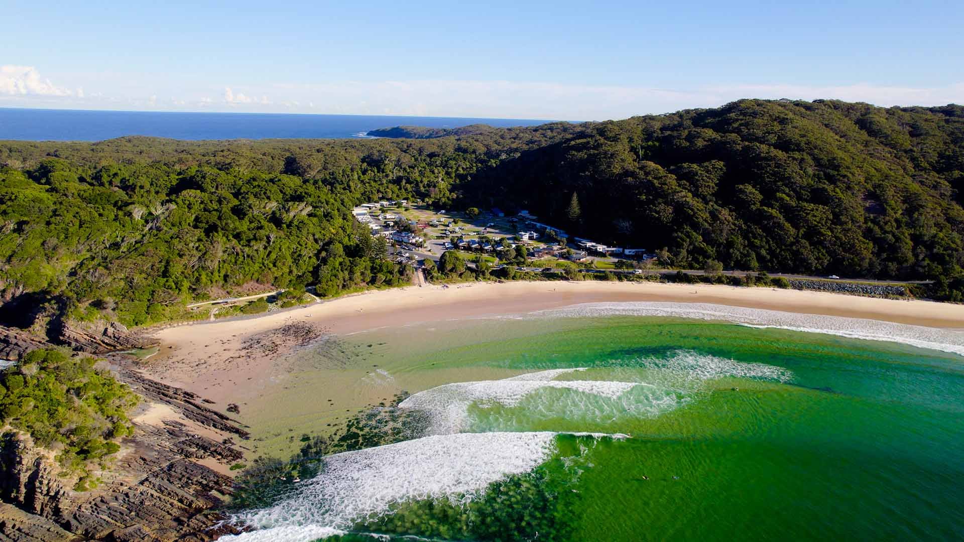 Your basecamp: Seal Rocks, Myall Lakes National Park—3 hours north of Sydney, oceanfront campsites with surf breaks at your door