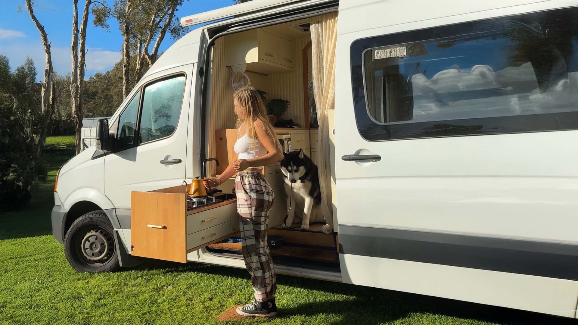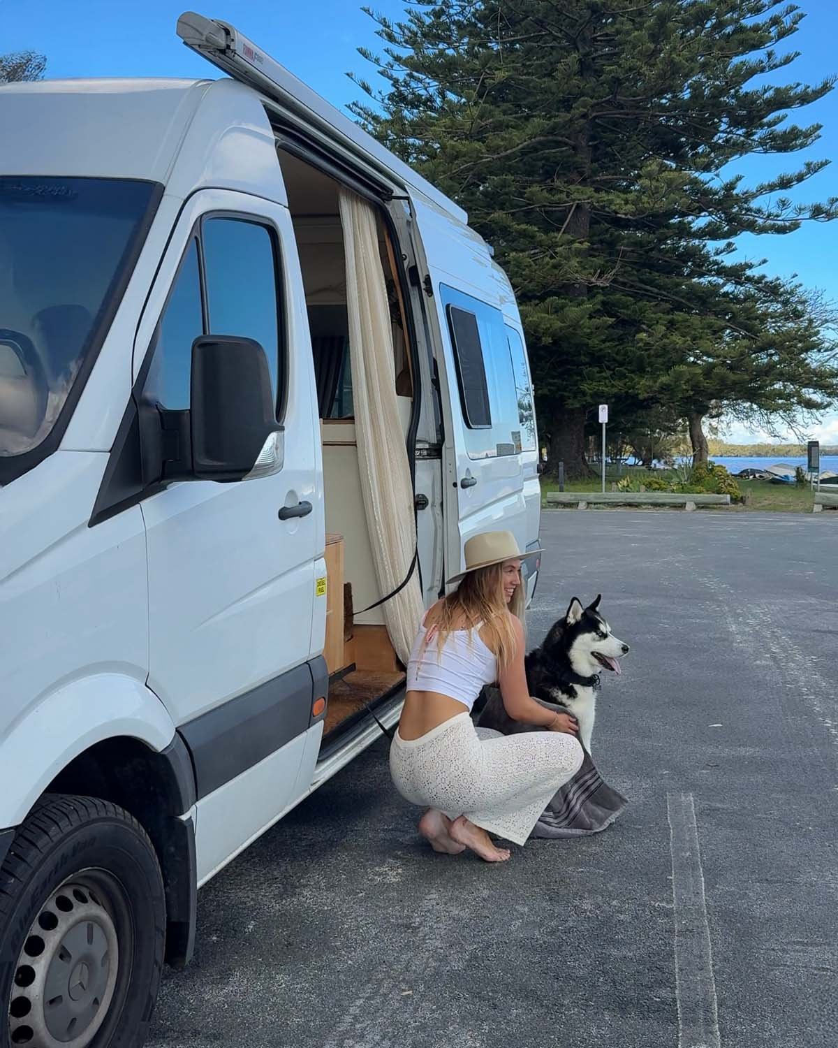Even an energetic husky like Echo knows how to appreciate the quiet life near the campervan.