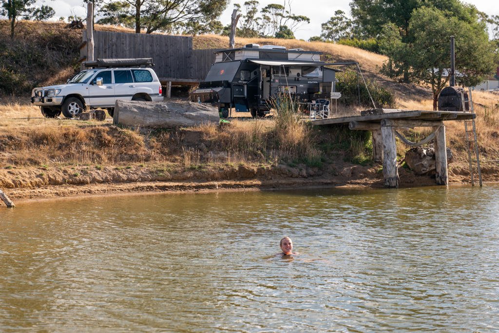 And ultimately, all of this — the delivered van, the off-grid campsite, the highland cows and dam swims — is leading somewhere specific: finishing the lap of Australia together, in a van of their own. One careful, well-tested step at a time.