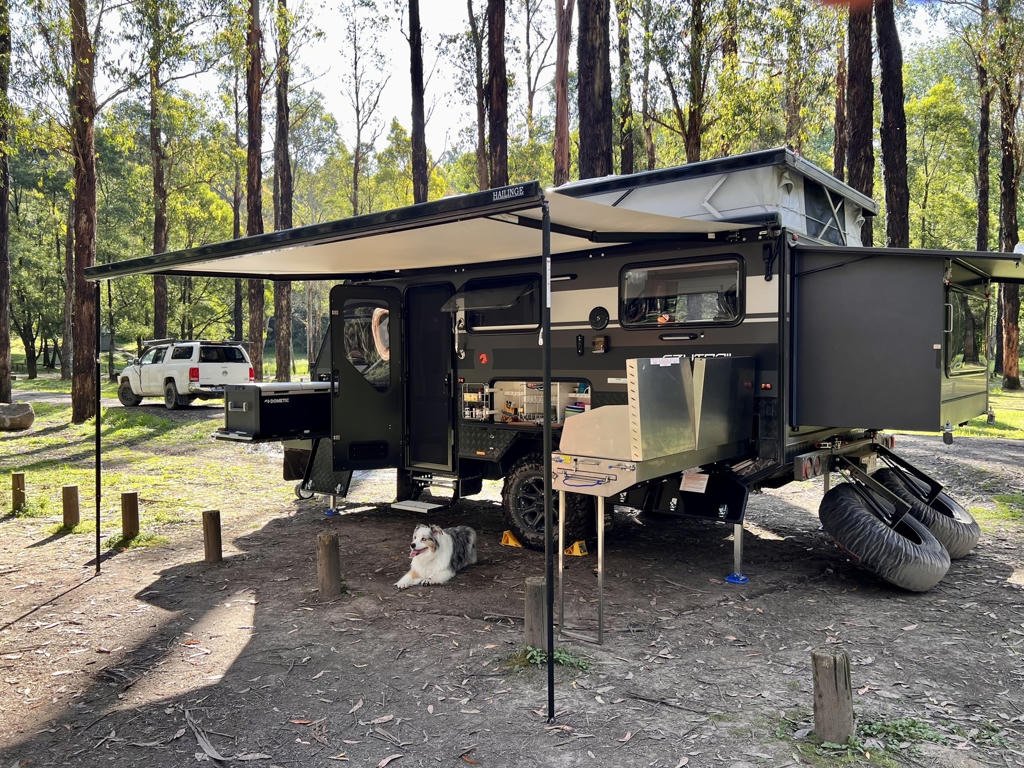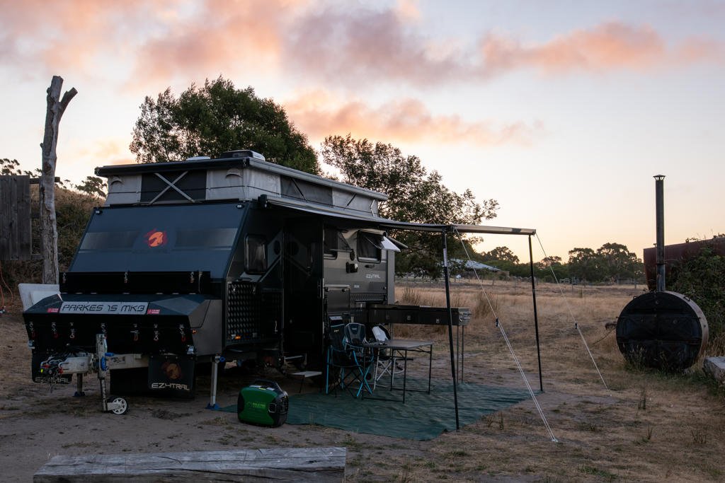 Their campsite was completely off-grid — no power, no toilets, no amenities — which meant the caravan needed to come loaded with everything they'd need to really test out the lifestyle properly. That’s where ‘Parky’, an Ezytrail Parkes 15 came in.